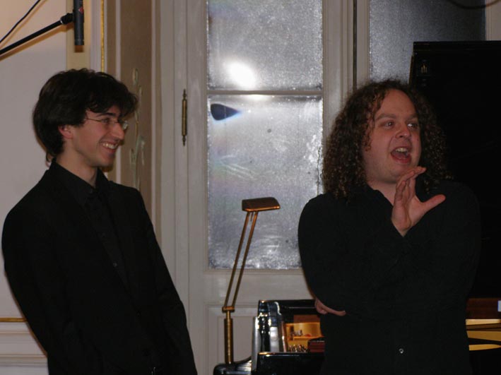 Es folgte das Piano Trio aus dem Jahr 2006 von Joseph Finlay. Es kommt selten vor, dass der Komponist bei der Aufführung seines Werkes im Hohhaus selbst anwesend ist. Susanne Scheffer nutzte diese Gunst geschickt, indem sie den geborenen Londoner vor der Aufführung interviewte, wobei ihr Nicholas Rimmer als Dolmetscher assistierte.
